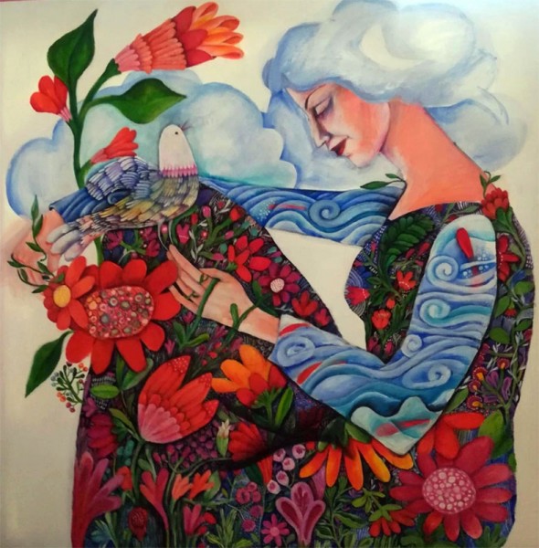 از کریستین بوبن سادگی در نگاه به دنیا و مردمش را آموختم. از فریدا کالو عریانی روح، از مارک شاگال رنگ و آزادی در کار و از نقاشان قاجار نگاه ریزبین به جزئیات.