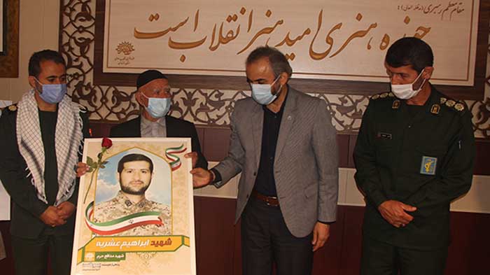 در پایان پس از رونمایی پوستر فیلم «پموک» توسط پدر شهید ابراهیم عشریه، پوستری از عکس شهید عشریه توسط رییس حوزه هنری مازندران به وی تقدیم شده و در فیلم روایی و مستند پموک برای نخستین بار در حوزه هنری مازندران به نمایش در آمد.