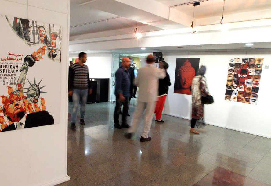دیدار جمعی از فعالان فرهنگی و اساتید دانشگاهی کشور تونس از نمایشگاه پوستر میانمار