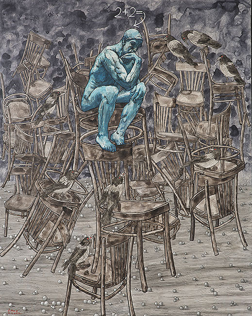 علی اکبر صادقی در نقاشی های خاطره انگیز خود سنت های غنی هنر فارسی را با شیوه سورئال نقاشی ترکیب می کند و با استفاده خارق العاده از رنگ و فرم آثاری شگفت انگیز و سرگیجه آور به وجود می آورد.