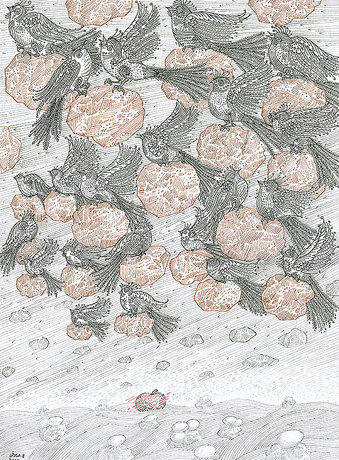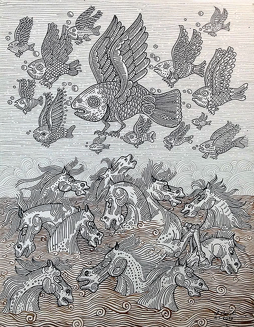 دنیای آثار او دنیایی فیگوراتیو است که به نقاشی های مینیاتور قدیمی با اشکال مردمی تر هنر شباهت دارند.